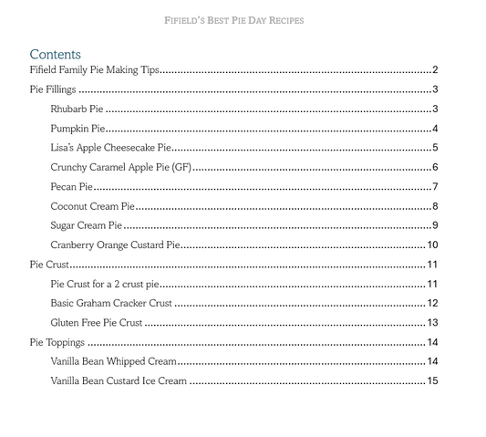 Fifield's Best Pie Day Recipes, E-Cookbook, Digital Download
