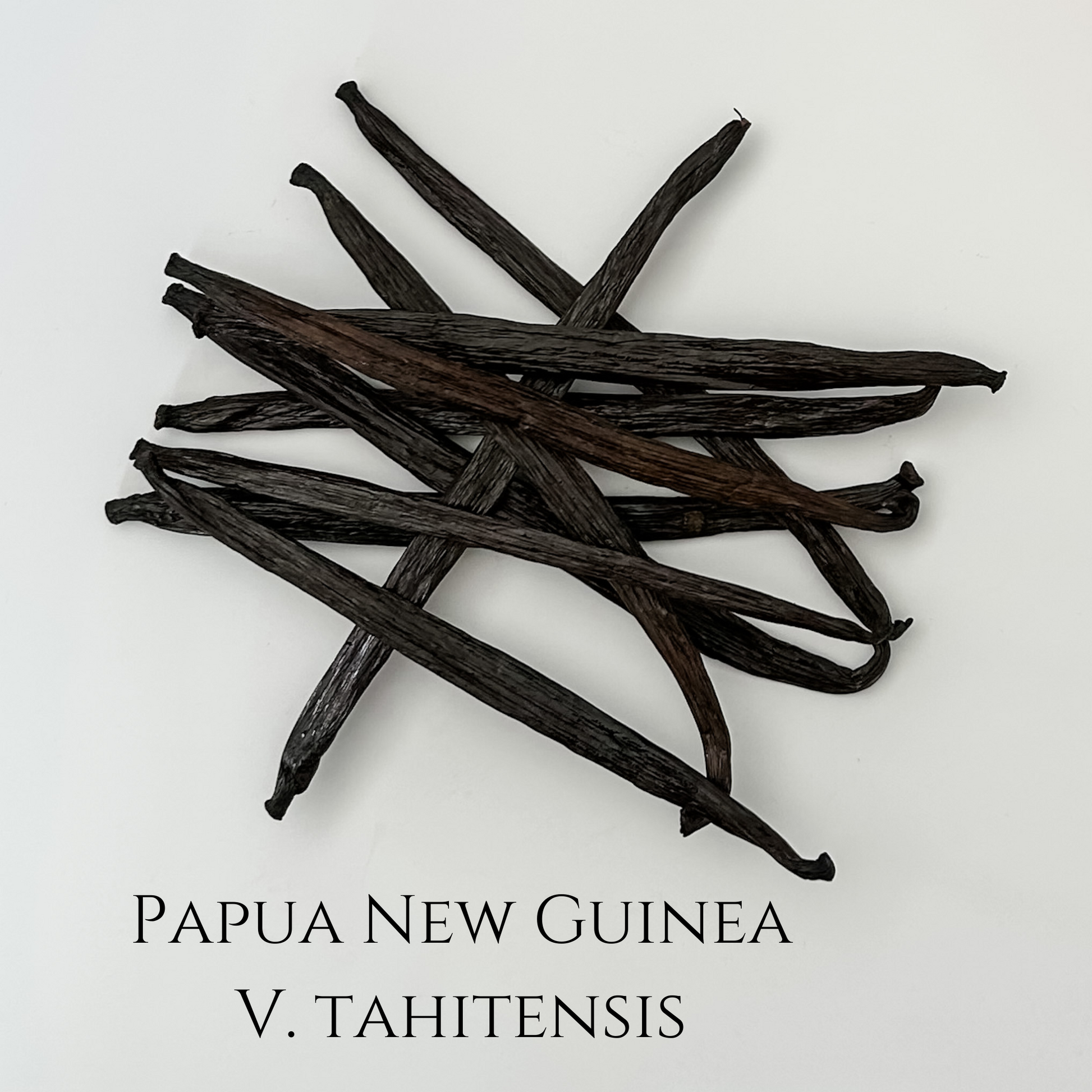V. tahitensis, grown in Papua New Guinea, is a different variety of vanilla bean than our other Papua New Guinea option! It is definitely vanilla but has fragrance notes that are slightly lighter and more floral than V. planifolia beans. We can often smell cinnamon when working with these! Grade A, about 7-10 beans per ounce.